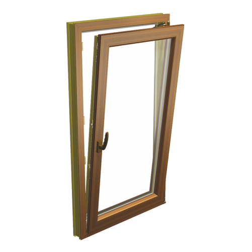 Մետաղապլաստե ոսկեգույն կաղնի պատուհան 3 խցիկ